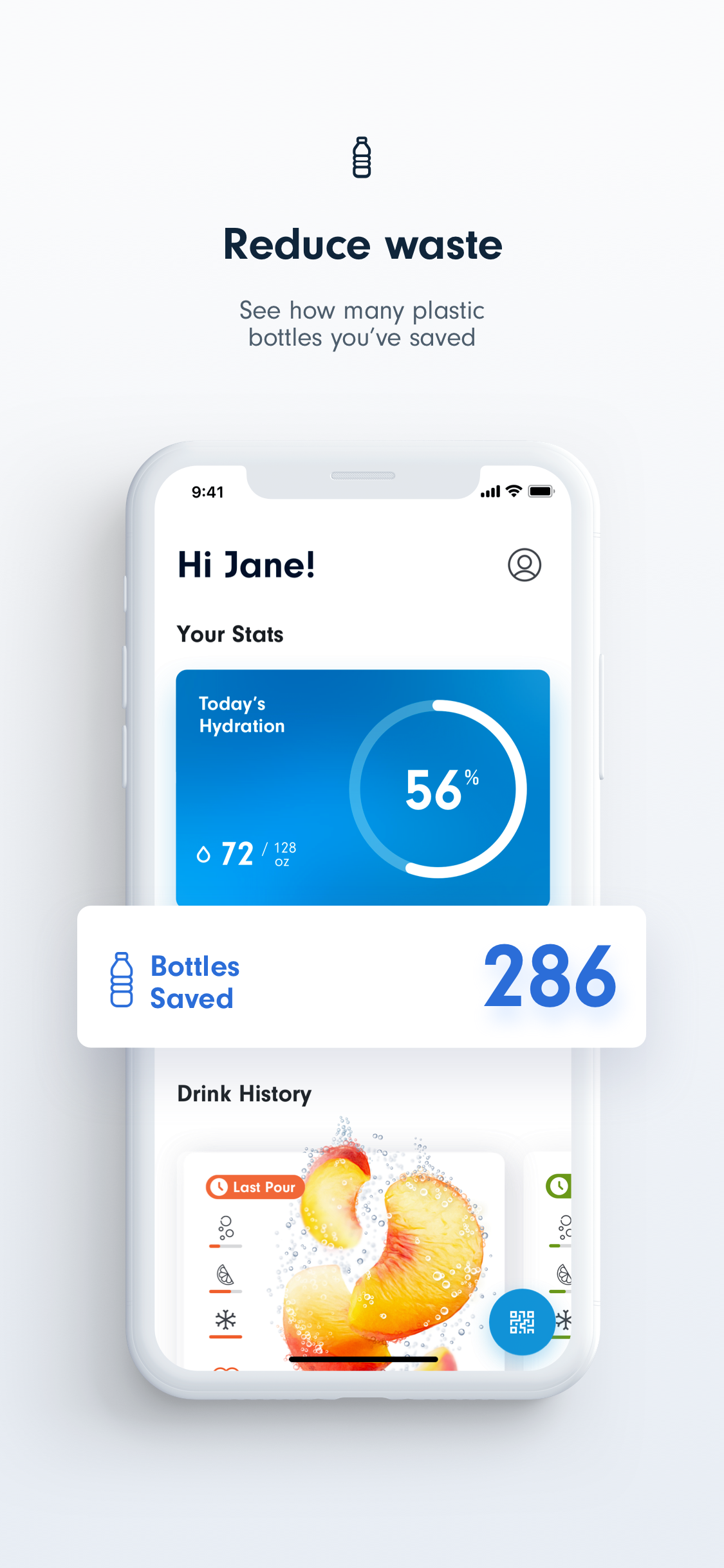 • a personalized QR code sticker for reusable bottles that allows people to be recognized by the dispenser each time they fill up.