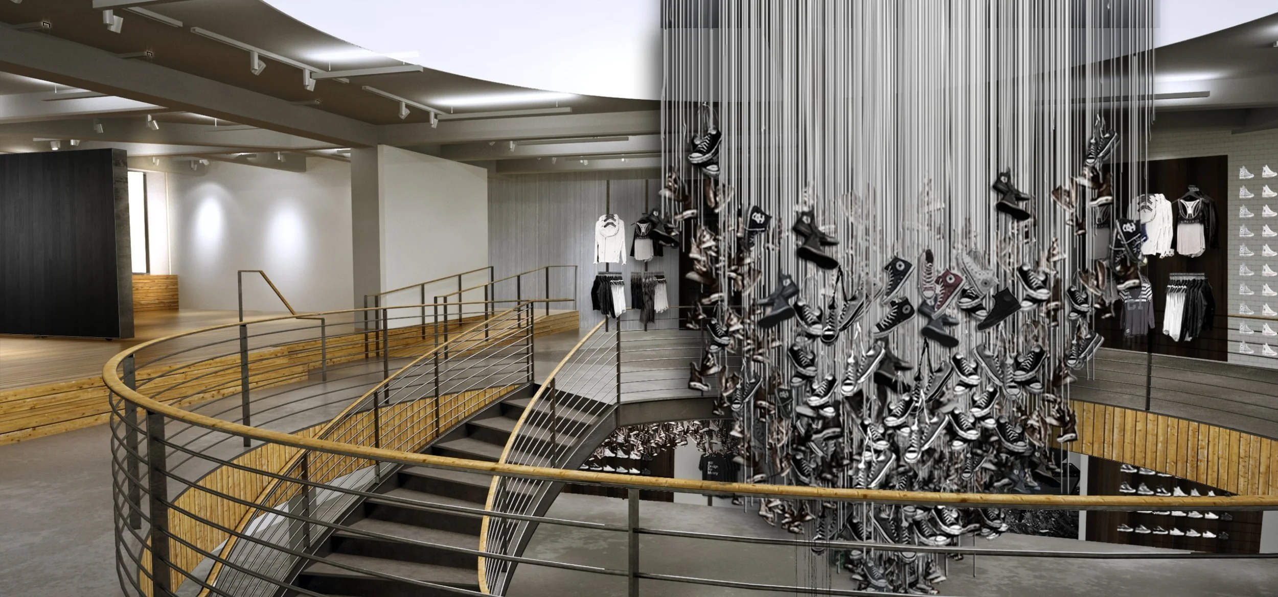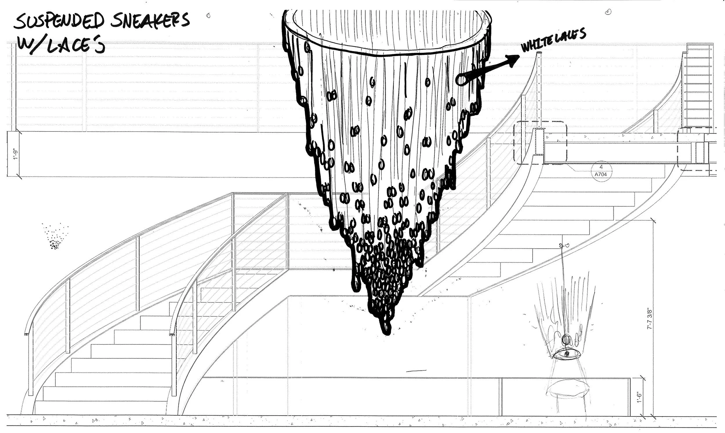 I also designed and oversaw the construction of the sneaker chandelier in the middle of the store